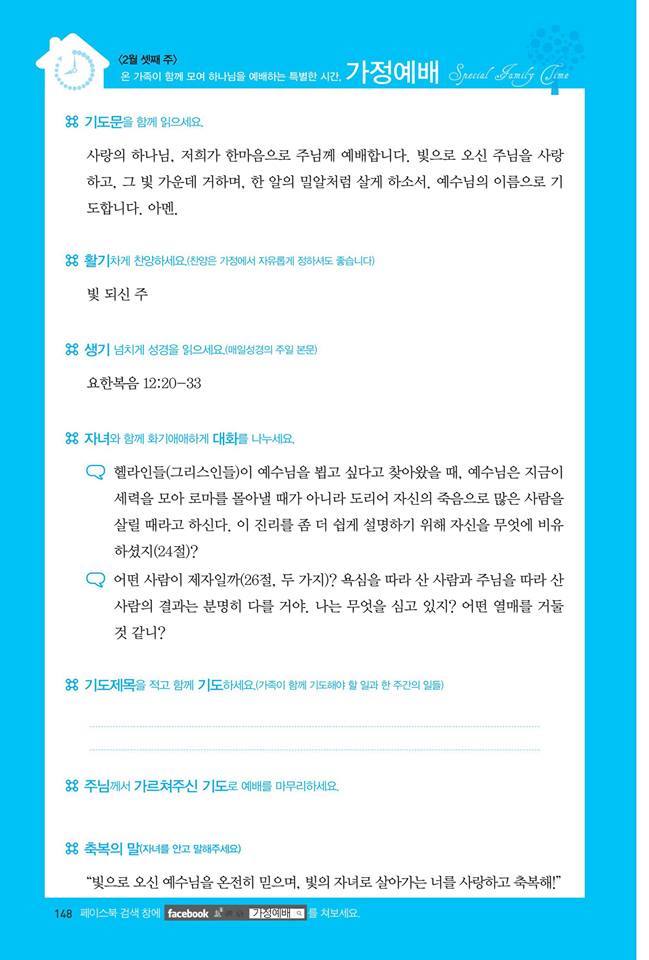 *가정예배지는 '매일성경'의 가정예배 순서지로 가정예배 드릴 수 있습니다.