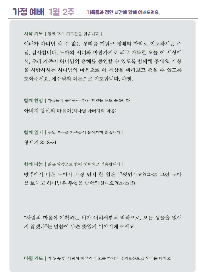 *가정예배지는 '매일성경'의 가정예배 순서지로 가정예배 드릴 수 있습니다.