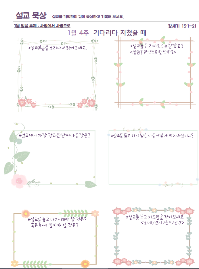 설교묵상은 하브루타 질문으로 들은 설교를 보다 더 깊이 묵상할 수 있습니다.