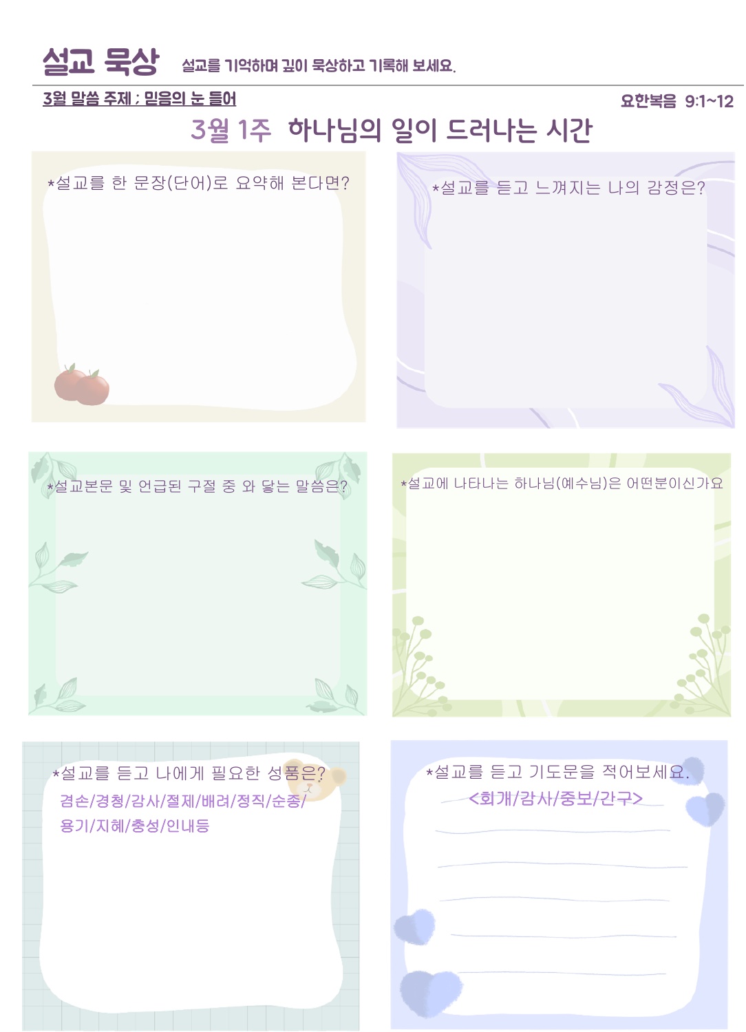 설교묵상은 하브루타 질문으로 들은 설교를 보다 더 깊이 묵상할 수 있습니다.
