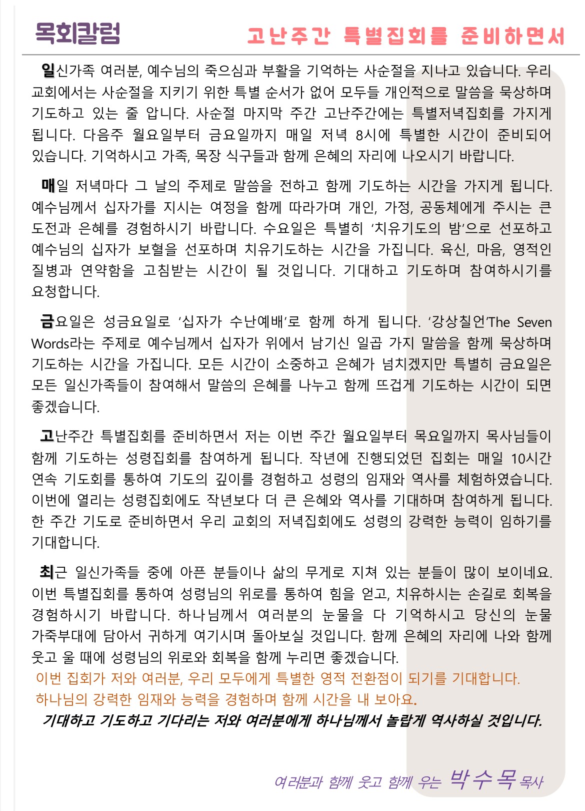 고난주간 특별집회를 준비하면서