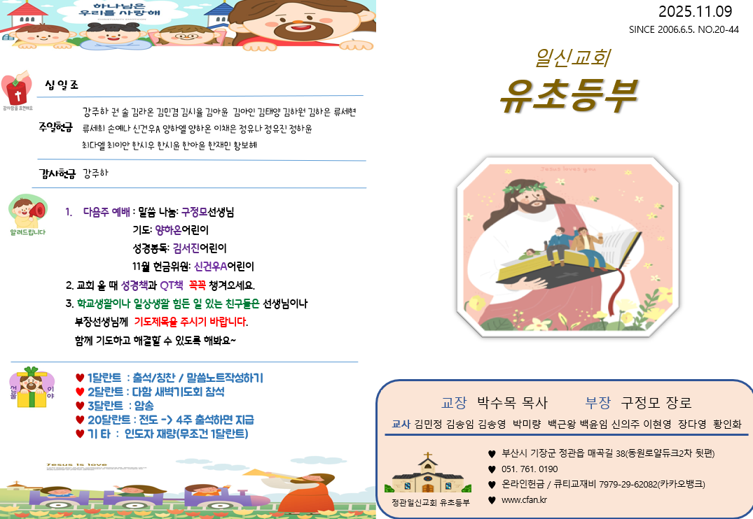 25년 11월 9일 유초등부 주보