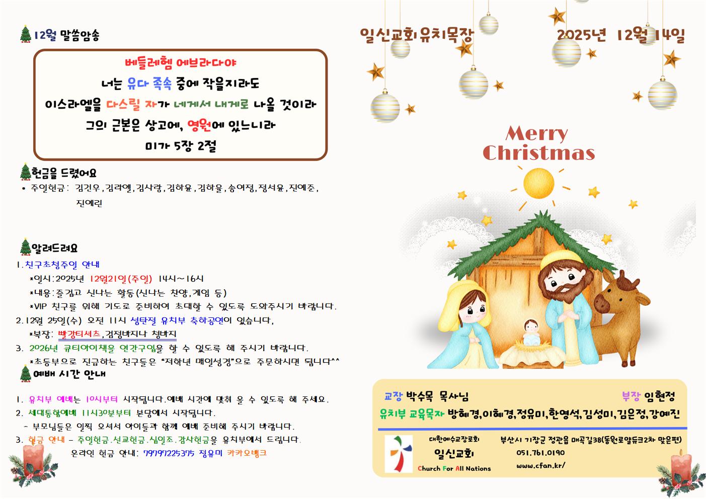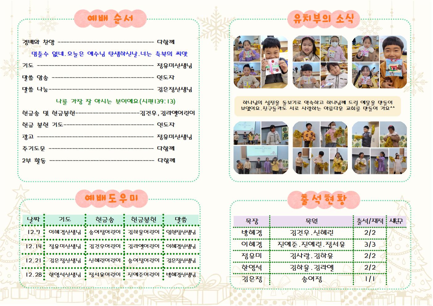 2025년12월14일 유치부 주보