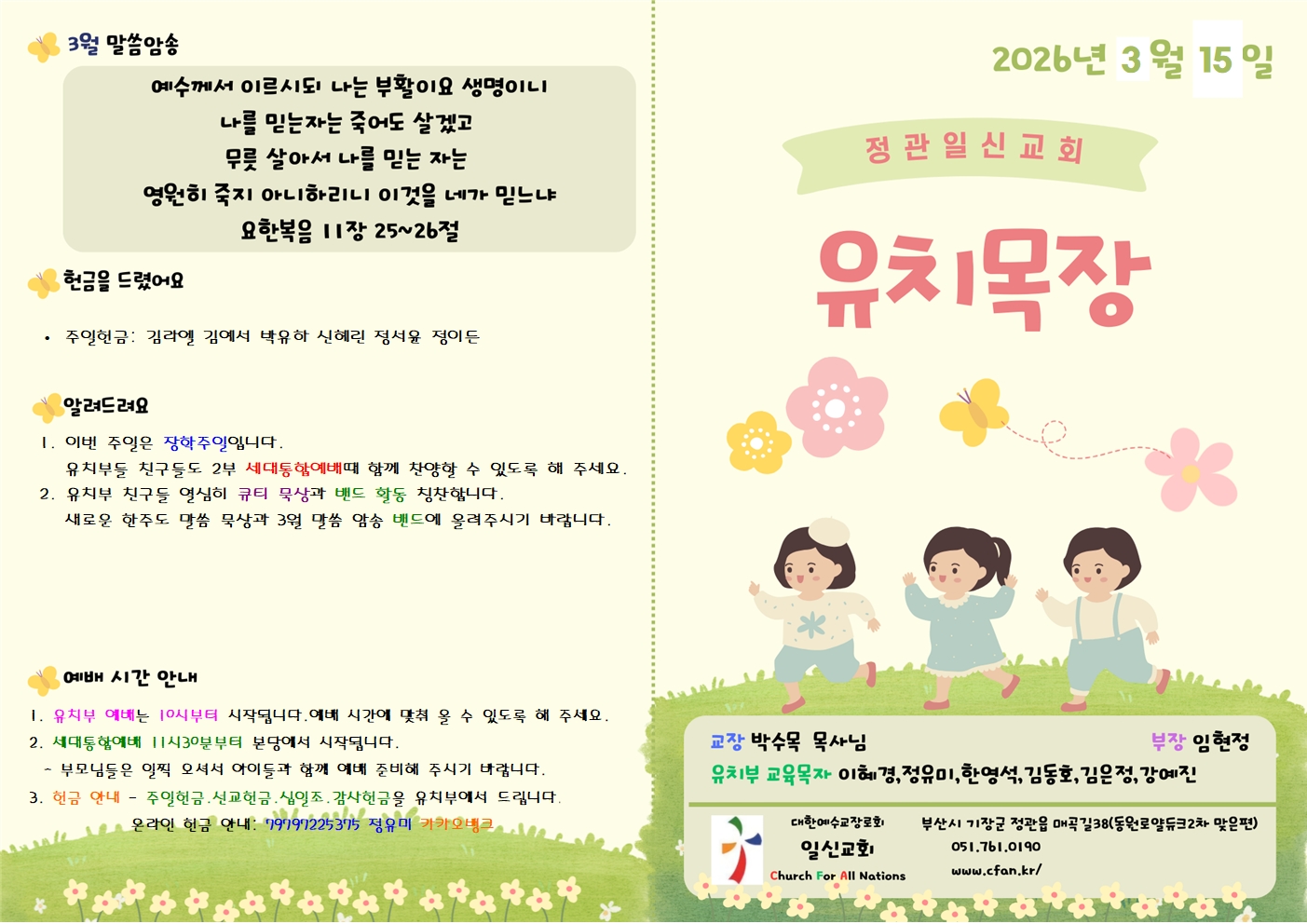26년3월15일 유치부 주보